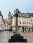 ЕПИСКОПСКИЙ ФОНТАН СО СВЯТЫМ ПЕТРОМ, ПРАВОСУДИЕМ И ОБЕЗЬЯНАМИ (ТРИР, ГЕРМАНИЯ, ЯНВАРЬ 2026 ГОДА)